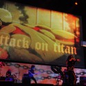「進撃の巨人」パートは梶裕貴(エレン・イェーガー役)、石川由依(ミカサ・アッカーマン役)の生アフレコでスタート。透過性スクリーンを用いた特殊な立体映像演出により、ライブ会場は作品の世界観の中にひきこまれた。最中、リヴァイ役の神谷浩史が突如サプライズ登場し、会場は大歓声の渦に。さらに巨大スクリーンの奥から、Linked Horizon がサプライズ登場。オープニング曲の「紅蓮の弓矢」「自由の翼」、Sound Horizon 名義での新曲「よだかの星」を披露。