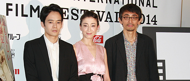 池松壮亮、宮沢りえ、吉田大八[シネママニエラ]第27回東京国際映画祭コンペティション部門において、本年の日本映画として唯一選出された『紙の月』の公式会見が10月25日に六本木アカデミーヒルズ49Fスカイスタジオにて行われ、主演の宮沢りえ、池松壮亮、そして吉田大八監督が出席した。以下、一問一答で掲載。