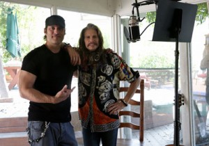 [シネママニエラ]映画『シン・シティ 復讐の女神』でエアロスミスのスティーヴン・タイラーが歌う♪「Skin City」のメイキング映像が届いた。同楽曲も収録した日本盤サウンドトラックも発売される。写真はロバート・ロドリゲス(左)とスティーヴン・タイラー