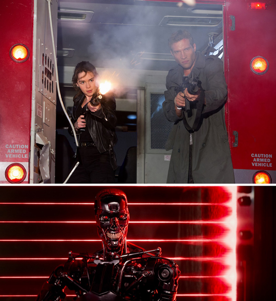 映画化5作目となる本作では驚きの展開が連続するという。まず、『ターミネーター』では、人類反乱軍リーダーのジョン・コナーの母親サラ・コナーを守る為に、カイル・リースはジョンによって未来から過去に送り込まれた。そして『ターミネーター2』では、亡きカイルの意志を受け継ぎジョンの命を守る母サラの姿が描かれるが、新作『ターミネーター:新起動/ジェニシス』では世界の命運を握るサラ・コナーとカイル・リースのふたりが強敵との壮絶なバトルを繰り広げる。