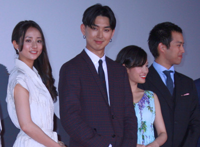[シネママニエラ]俳優の松田翔太が主演映画『イニシエーション・ラブ』の完成披露試写会の舞台あいさつに、前田敦子、木村文乃、三浦貴大、前野朋哉、堤幸彦監督とともに登場した。