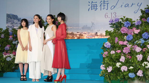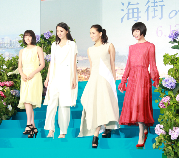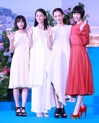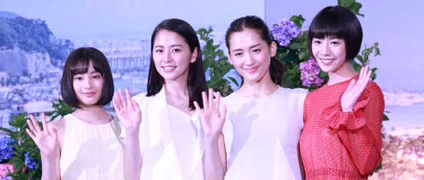 次女役の長澤は「本作には監督の女性への愛情や尊敬の念を感じさせる作品」と魅力を分析。その魅力は世界にも通ずるであろうと自信を見せる。しっかり者の長女役の綾瀬は、腹違いの四女を演じた広瀬について「すごくしっかりしています。それにあどけなさとクールさが絶妙なバランスである。映像になると目を惹く、気になる存在」だと饒舌に妹自慢。劇中同様の姉妹の仲の良さを見せつけた。そして、本作について「どこを切りとっても美しい作品。観た後に気分良くなるので、(劇場公開を)楽しみにしていてください!」と呼びかけた。