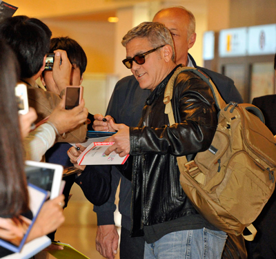 先日、行われた本作のロサンゼルスのプレミアで、ジョージ・クルーニーは「大好きな日本に妻と一緒に行くよ。彼女は一度も行ったことが無かったからね」と、独身を貫いてきた彼を虜にした才色兼備の妻アマルと共に来日する事を宣言していた。この日14時過ぎに報道陣が待ち受けるロビーに姿を現すや、歓喜の悲鳴を上げるファン。「8年ぶりに日本のファンと会えて嬉しいよ」と、フライトの疲れも見せず、嬉しそう。
