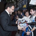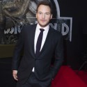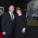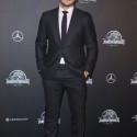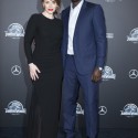 クリス・プラットはグレーのスーツにパープルのネクタイ姿。ブライス・ダラス・ハワードは身体にフィットした黒のドレス、赤のリップとまとめ髪でクラシカルな雰囲気をつくっていた。