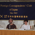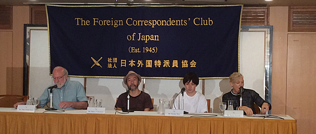 外国人記者からの質問は、同じ原作を基にした市川崑監督が撮ったフィルム作品と、デジタル技術を駆使した戦争映画『永遠の0』を例にあげ、映像表現としての本作について、戦闘シーン、(安保法案閣議の時勢を含ませた)政治的な側面からの危機感、極限における食人行為に対する見解を問うものなど多岐にわたった。
