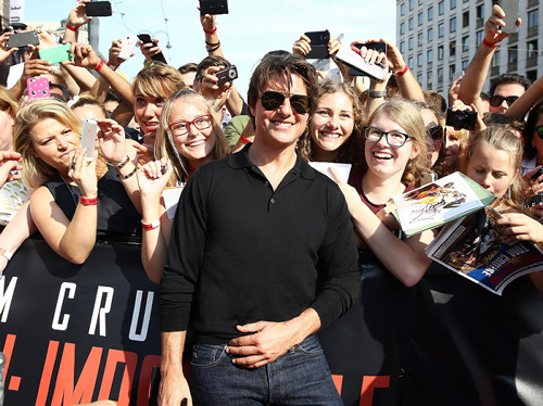 気温が30度以上となったこの日、会場のウィーン国立歌劇場(通称オペラハウス)には世界中から5000人以上のファン、それに300名のマスコミが詰めかけた。会場周辺の道路は完全に封鎖され厳戒体制の中、トム・クルーズとベンジー・ダン役のサイモン・ペッグが到着すると、大きな歓声があがった。中にはトムにハグされて感極まり泣き出す女性ファンの姿も。謎の女スパイ役レベッカ・ファーガソンは妖艶で大胆にスリットが入った真っ赤なドレスで登場し会場を魅了した。