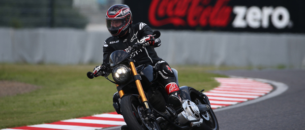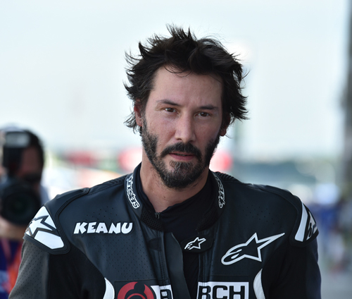 胸の前で手を合わせ、感謝の意を伝え、バイクにまたがり、サーキットへと繰り出す。前を走る先導車を今にも追い越さんばかりの走り屋根性を見せ、鈴鹿サーキットの1周半を走り切った。バイク好きのキアヌが、今回貴重なプライベートな時間を割き、鈴鹿サーキットでの走行。ピットへ戻り、ヘルメットを脱いだキアヌは満足げな笑みを見せ、取材陣のフォトセッションやファンの握手などに快く応えた。