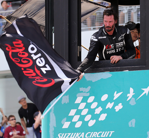 2015 FIM世界耐久選手権シリーズ第2弾 “コカ・コーラ ゼロ”鈴鹿8時間耐久ロードレース 第38回大会。7月25日、15時10分。レースが一段落した時、場内アナウンスによりキアヌ・リーヴスが鈴鹿8耐を電撃訪問をアナウンス。場内はどよめきと歓声に包まれた。