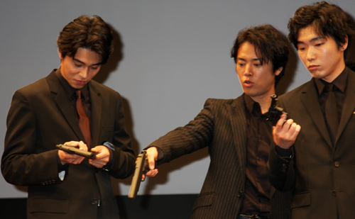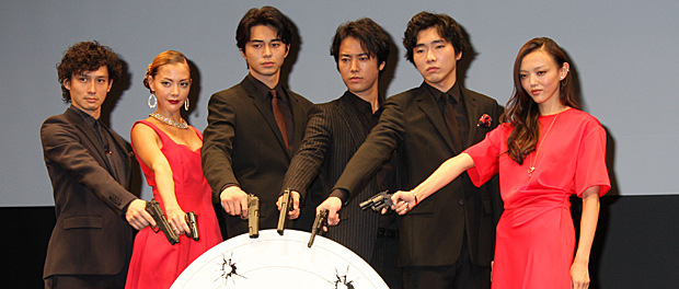 大越組若頭・久松(鶴見辰吾)の息子・勇人(東出)、組長・大越(永島敏行)の息子・大輔(桐谷)を中心に、五誠会に恨みをもつ者たちが出会い、壮絶なバイオレンスが展開する今作。撮影は2014年6月の30日間のみ。濃密な時間を過ごした役者たちは、この日は楽屋トークのようなリラックスムードが終始漂い、ぶっちゃけトーク、噂の検証など自由度の高いものになった。また、シリーズの第1弾『GONIN』当時(19年前)を各自が振り返るお題が提示された。