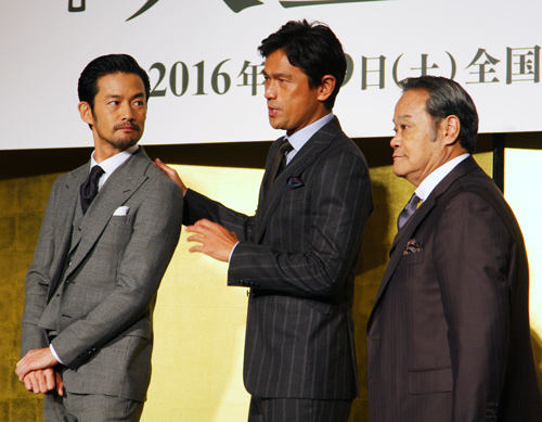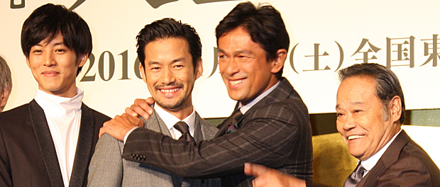 [シネママニエラ]俳優の竹野内 豊、江口洋介、松坂桃李が10月1日に映画『人生の約束』完成報告会見で、柄本 明が本作の出演オファーを一度は断ったエピソードの顛末を知り驚きの表情を見せた。会見には優香、髙橋ひかる、西田敏行、石橋 冠監督も出席。