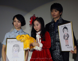 2月22日、有川浩のベストセラー小説を映画化した『阪急電車 片道15分の奇跡』の製作報告会見が都内のホテルで行われ、出演者の中谷美紀、戸田恵梨香、宮本信子、南果歩、芦田愛菜、そして本作で監督デビューとなった三宅喜重監督が登壇した。