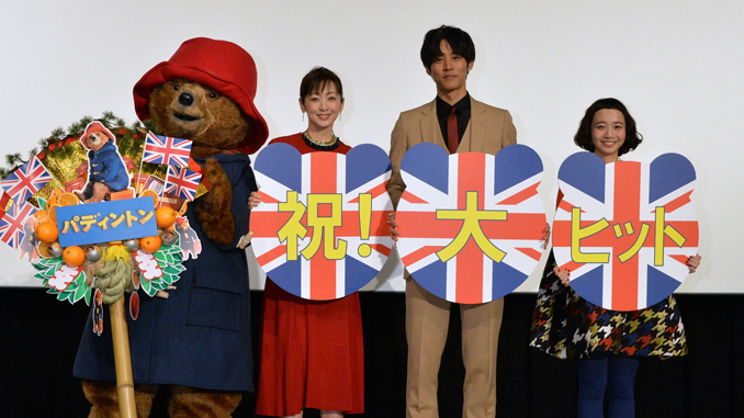 一方の斉藤は「私が演じたブラウン夫人は、パディントン駅でクマを見つけて、パディントンの名付け役なんです!そんな大役を演じられて光栄です。」とコメントしつつ、「…あっ!これ、ネタバレかしら…!舞台挨拶が始まるまであんなに注意していたのに。でも本当にすごく素敵なお話しで、私自身クマに泣かされるとは思いませんでした(笑)」と観客の笑いを誘った。