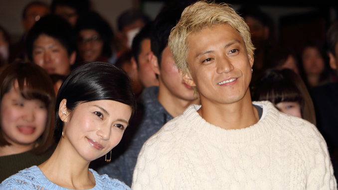 金髪姿の小栗旬(右)とベリーショートヘアの柴咲コウ、映画『信長協奏曲(のぶながコンツェルト)』トークショー付きカップル限定試写会