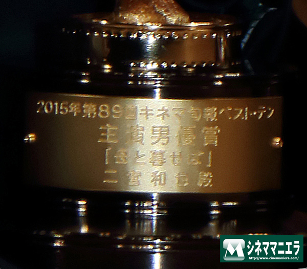 本賞は1924年度よりベストテンを選定したことを発端とする歴史ある映画賞。その映画雑誌「キネマ旬報」は創刊95周年を迎える。清水勝之社長は「昨今の出版業界は厳しい」と現況に触れて、二宮と女優の深津絵里が表紙をつとめる同誌ベスト・テン号に言及。「そんな中で大変よく売れています。お買い上げいただいた皆さまと二宮さま、ありがとうございました」と深々と頭をさげる。さらにまだお買い求めになっておられない方はお布施だと思って、本会場ロビーにて販売しておりますなどのユーモアを交えて、客席及び二宮ファンらに呼びかけた。
