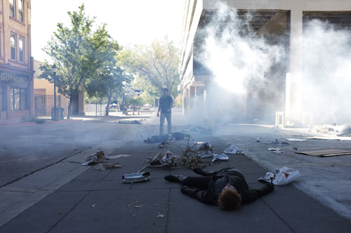スティーヴン・キング原作の衝撃作『ミスト』では深い霧に包まれた街で巻き起こる侵略者による怪異が不安と恐怖を増幅させたように、本作でも暗闇の中、蠢く気配は感じるがなかなか姿を現さない何かからの侵略に人々が我を失い混沌とする狂気の世界が描かれている。