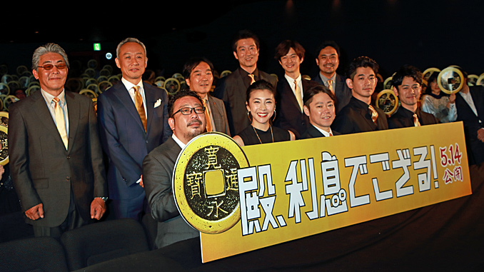 舞台あいさつでは、現在のお金に換算して3億円もの銭を集めた劇中にちなんで、もし3億を手に入れたら?という質問が。「檀上のメンバー(監督とキャスト)で、もう1本映画を撮る資金にしたい」(阿部)、「『殿、利息でござる!』の鑑賞券を購入して配りたい」(瑛太)、「裏では世界一周旅行と言っていたのですが、『殿、利息でござる!』専用映画館をつくりたい」(妻夫木)といった映画愛に溢れる回答が続いた。
