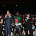 [シネママニエラ]映画『ヒーローマニア-生活-』の完成ヒーロー上映会が4月20日に 新宿バルト9にて開催され、主演の東出昌大をはじめ、窪田正孝、小松菜奈、船越英一郎、片岡鶴太郎、そして豊島圭介監督が登壇。サプライズとして最強ヒーローの仮面ライダー1号が応援に駆けつけ盛り上げた。