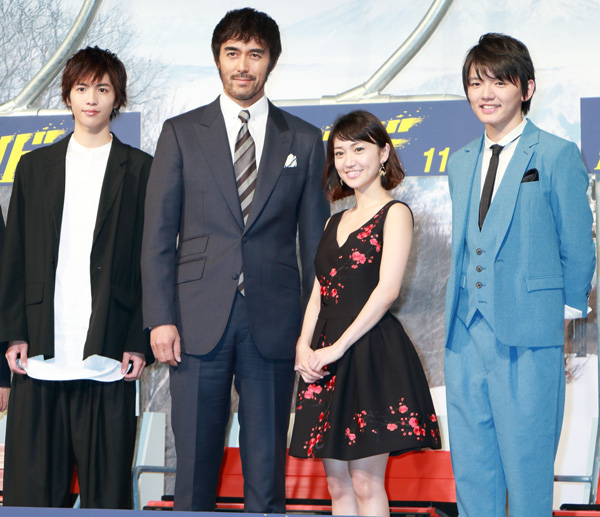 その流れから、大倉は「(会見の並び位置の)隣にD-BOYSがいるので、撮影中はジャニーズ対D-BOYSという戦いに負けないように頑張りました!」と笑顔で語りつつも、大島から「大倉さんは、エキストラの方に『俺が上手に見えるように下手に滑ってくれない?』と頼んでたのを聞いちゃいました」という暴露が。大倉はスキー場のレスキュー隊員で元プロという設定だけに、「エキストラさんは大会出場者なので、8の字に滑べるだけでもかっこいいんです。僕はこれまで2度しかスキーをしたことがないので、不安で。大丈夫だったんでしょうか」と正直に心情を語ると、監督はすかさず「大丈夫です!」ときっぱり。大倉は安堵し笑みを浮かべた。