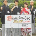 この日は、全員が和装で登場。雨模様が心配された中、つかの間の晴れ間に江戸城=皇居の見える位置でフォトセッションを行った。走るポーズを披露すると、佐々木が出発の一声をあげると、誰からともなく劇中同様の掛け声「えっさ、ほらっさ」が起こった。続編とあってチームワークは抜群だ。
