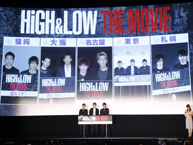 [シネママニエラ]映画『HiGH&LOW THE MOVIE』が7月16日に公開初日を迎え、東京・大阪・札幌・名古屋・福岡の5大都市を中継でつなぐ舞台挨拶を実施し、雨宮兄弟を演じたTAKAHIROと登坂広臣が次回作『HiGH&LOW THE RED RAIN』には斎藤工を雨宮兄弟の長男・尊龍役として迎え、雨宮兄弟の物語を描くことを発表した。