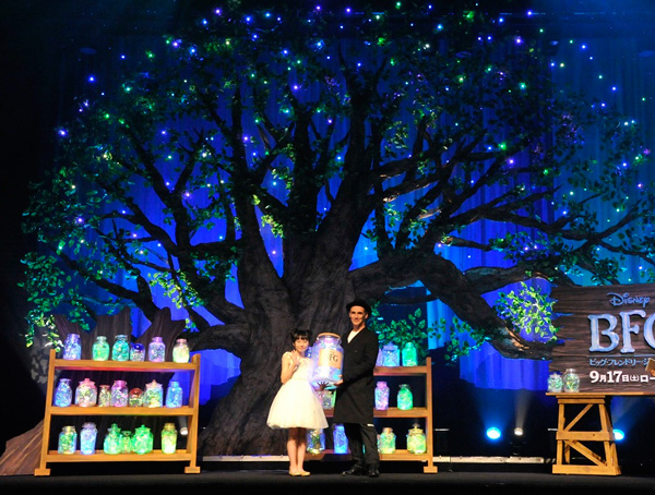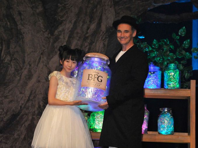 本田は「このような素晴らしいステージに、マークさん、BFGと立ててすごく幸せです! 今日お会いするまでは身長7メートルの方だと想像していたので、飛行機に乗れるか心配していました!(笑)」と人生初のオスカー俳優との対面を笑顔で喜ぶ。あたたかい歓迎にマークも日本語で「アリガトウゴザイマス」と一言、そして「コンニチワ!マーク・ライランス デス!7メートルの巨人サイズでなく、申し訳ない(笑)。こうして日本に来られて嬉しいです。子供の時からいつか日本に行きたいと思っていました。ここにいるのは映画のおかげですね(笑)」と日本語を交えて答えた。