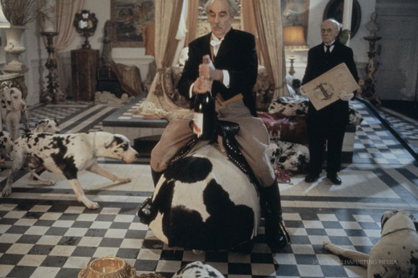 ルドルフ(クリストファー・リー)は飼い犬のダルメシアンにしか興味がない風変わりな大富豪。ある夜、彼の遺産にしか興味のない親族を招いて晩餐会を開いたが、そのさなかルドルフの常連の売春婦レインボウ・ガールたちが到着する。招待客を差し置いて乱痴気騒ぎをするルドルフだったが、その場で心臓発作になり昏睡状態に陥ってしまう。早くも親族たちは遺産について言い争うが、ルドルフと同じく風変わりな甥のメレアーグラ(ピーター・オトゥール)に全ての遺産が渡ってしまうのではないかと気が気では無かった。親族たちのやり取りを聴いてしまったメレアーグラは愛犬クロノスと共にその場を静かに去ってしまう・・・。