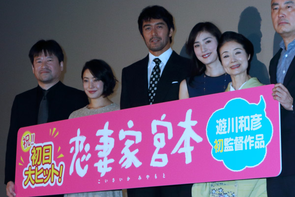 映画『恋妻家宮本』の初日舞台挨拶が1月28日にTOHOシネマズ日劇で開催され、阿部寛、天海祐希、菅野美穂、佐藤二朗、富司純子、遊川和彦監督が登壇。撮影を振り返りつつ、阿部と天海は感慨無量の様子を見せた。