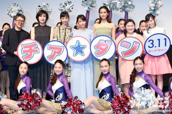 女優・広瀬すず主演の青春映画『チア☆ダン ~女子高生がチアダンスで全米制覇しちゃったホントの話~』完成披露試写会が2月12日に都内のホールで開催され、チアダンス部JETSメンバー役の広瀬をはじめ、中条あやみ、山崎紘菜、富田望生、福原遥、JETS顧問役の天海祐希、そして河合勇人監督が揃った。