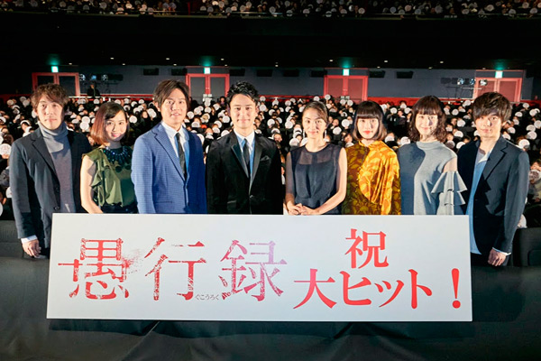 俳優の妻夫木聡が2月18日、主演映画『愚行録』公開初日舞台あいさつにて、「いろんな映画の種類があると思いますが、心に残す映画は数少ない。この愚行録は、確実に心に何かの傷跡を残す作品だと思います」などと魅力を語った。この日のステージには、妻夫木をはじめ、満島ひかり、小出恵介、臼田あさ美、市川由衣、松本若菜、中村倫也、石川慶監督の総勢8名が揃った。