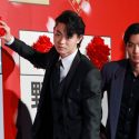 本作は人気コミックの実写映画化。日本の最高峰に位置する海帝高校の生徒会長の座を目指し、選挙を勝ち抜くため切磋琢磨する高校生の物語。そのため、この初日には原作者の古屋兎丸氏もプレミアムシートより公開を祝し、キャストの菅田らが壇上から手を振ると、古屋氏も立ち上がり一礼。客席からは大きな拍手がおくられる一幕も。