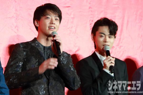 そんな菅田は「必死に作ったものが公開を迎えて嬉しい反面、寂しくもあります。(本作は)一見、ポスタービジュアル等からポップな作品に思われますが、描くのは生徒会選挙という政治闘争バトル」だと解説。さらに「番宣で、本作ほど「面白かった」と言われることはあまりない」と評判の良さを語った。そこで野村から「お世辞で言ってくれるだろ!」と鋭い指摘が入り、菅田は「でも、お世辞は(言われる内容でそうだと)わかるやん」と冷静に返す。すると野村が、誰ともつかないカメラ目線で「わかるから!」とチクリ。