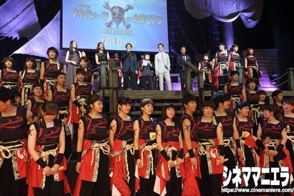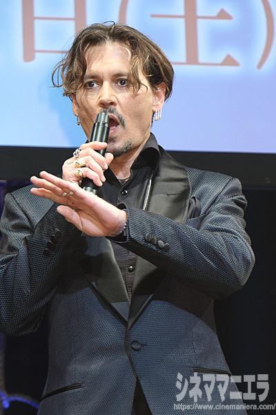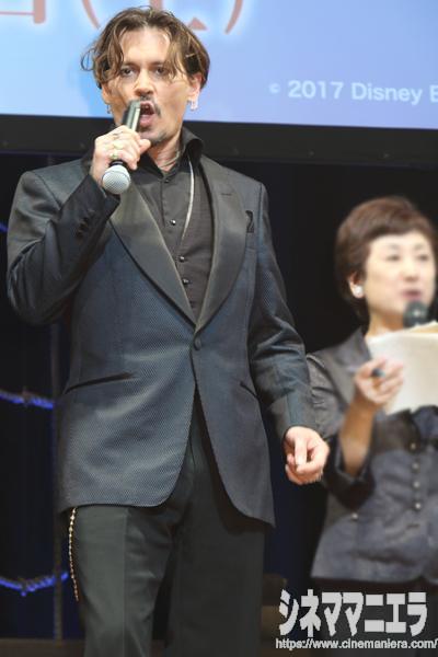 ルールがないジャック・スパロウを地でいくように、このプレミアでも終始、自由にふるまうジョニーに会場は大爆笑! 日本語で「コニチハ(こんにちは)!」と述べたあと、照れくさそうに「意味は知らないけど日本語を使ってみた」とおどけるジョニー。「コニチハ」と連呼しまくり、会場を笑いでジャック。唐突に「(今から一緒に)ご飯にいこう!」とサービス精神を発揮した。