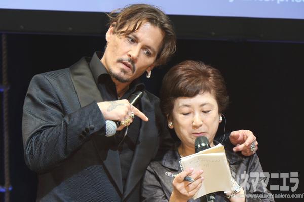 常々「今の自分があるのはファンのおかげ」と語るジョニーは、この場内に多数いるジャック・スパロウ姿のコスプレに触れ、「僕のジャック役は引退する! そして君たちに交代してもらおう!・・・いや続編は100人のジャックが登場する物語にしようか。その中に僕も混ぜてもらうよ」と発し、場を盛り上げた。