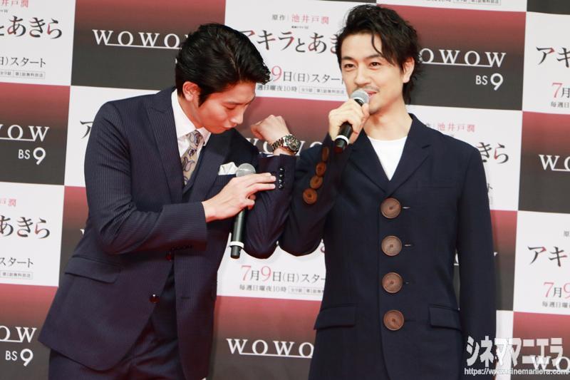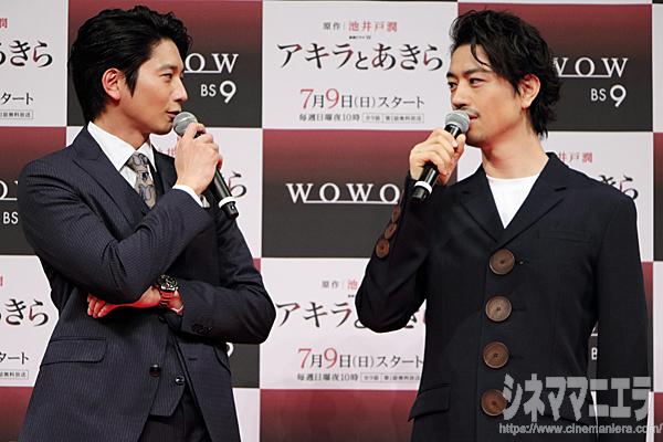 本作は池井戸潤著の小説刊行のタイミングに合わせて初映像化。運命が交差する「あきら」という名の出自の異なる二人の男性の半生を描く社会派ドラマ。向井は「ありがたいこと。かちっとした職業ドラマはあまりなくて。本作はセリフの量も多いですけど、専門用語が多くて大変でした」と話し、斎藤も「激動の時代を切り取っており、覚悟はしていたが台本を読み(セリフの量に)愕然とした」と同意する。