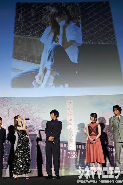舞台挨拶の最後には、北村から「いま生きていることは本当に素晴らしいことなのだと、映画を観て十代ながらに改めて感じました」、浜辺から「衝撃的なタイトルには実はすごく切ない思いや願いが込められていて深い意味があります」と作品の魅力が語られた。