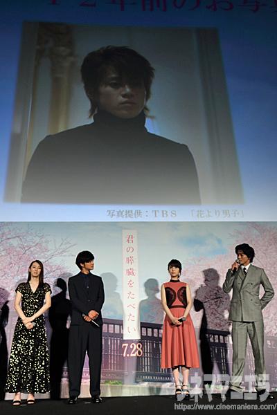 劇中では12年の時を経て届く思いが描かれることにちなみ、この日はキャストの12年前の写真をスクリーンに映し出す一幕も。浜辺は4歳で「家族とのおでかけ」写真。北村は7歳で「父親と釣りに出かけた」写真。北川は18歳、雑誌「セブンティーン」モデル時代の写真。小栗は22、3歳でドラマ「花より男子」で花沢類役の写真。このお披露目から当時を振り返るコメントも。北川と小栗は「12年後の自分」は想像できなかったそうだが、今現在、女優・俳優でいることに感謝する言葉も伺えた。