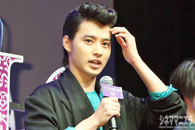 三池監督は「ジョジョの名前に恥じない作品です。(出演者は)撮影現場においては超人です。強く、存在価値があると納得してもらえる、いい役者です!」と大絶賛。そしてスペインでの撮影を「すごくいいところですが、気をつけていただきたいのが、お風呂場が滑りやすいこと。岡田(将生)君は縁に頭をぶつけて、1時間ぐらい記憶を失って、湯船が真っ赤だった」と現地でのハプニングを明かす。これには、岡田は「それは言ってはダメ・・・」とアタフタし、内ポケットからハンカチを取り出して汗をぬぐっていた。