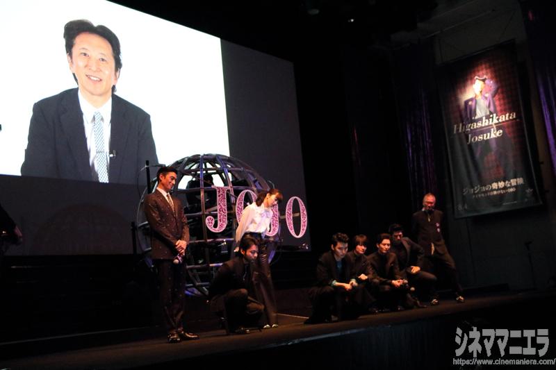 原作者・荒木飛呂彦先生よりビデオメッセージが上映され、真剣な表情の山﨑賢人、神木隆之介、岡田将生、新田真剣佑