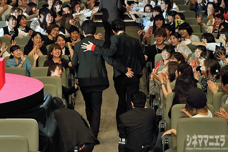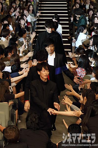 揃って会場を歩む佐藤健と綾野剛の後ろ姿