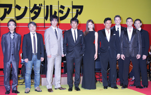 織田裕二、黒木メイサ、伊藤英明[シネママニエラ]6月8日、映画『アンダルシア 女神の報復』の完成披露試写会が東京国際フォーラムで行われ、出演者の織田裕二、黒木メイサ、伊藤英明、西谷弘監督、そして主題歌を担当したイル・ディーヴォが登壇し舞台あいさつを行った。