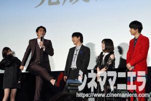 山﨑は「心の中で突っ込んでいる設定なので、(このメンバーの中でお芝居をするのは)笑いをこらえるのが難しかった」と吐露し、「みんな厳しかったですけど、特にムロ(ツヨシ)さんはテストと本番でのお芝居が異なるので、それに慣れていないので(無表情は)使いまわして……」とゴニョゴニョ。すると、同級生役の賀来は「笑わせるまでやるぞ!というシーン」があったことに触れ「その山﨑賢人の表情には注目してもらいたい」とアピール。