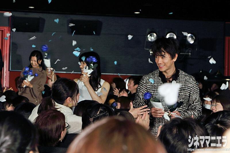 俳優の佐藤健が11月16日、主演映画『8年越しの花嫁 奇跡の実話』の完成披露試写会に出席。舞台挨拶冒頭の一言挨拶で、妻役の土屋太鳳のコメントに対しオフマイクで「素晴らしい!」と語りかけて絶賛した。そんな佐藤は土屋に、感謝をこめて花冠をサプライズでプレゼント。佐藤は花冠について、「奇跡という花言葉を持つ青い薔薇、それに花言葉・幸せな思い出・試練・箱入り娘のダイヤモンドリリーをあわせた」と説明した。