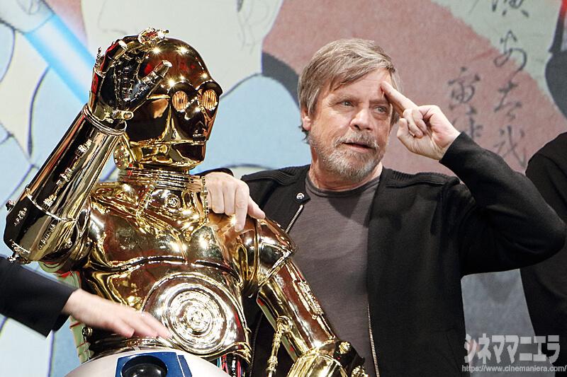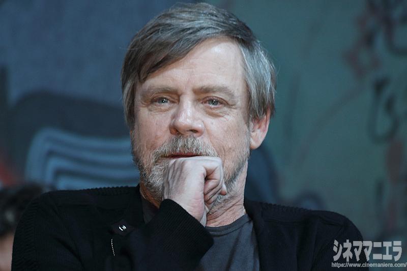 劇場公開1作目となる『スター・ウォーズ エピソード4/新たなる希望』以来の来日となったマーク・ハミルだが、今回の来日では「到着して以来、ホテルの中だけです」と苦笑い。それでいて、個人的な「最大の衝撃は、またスター・ウォーズに配役されたこと。実はジェダイになると年金プランがあるんですよ!」とジョークを交えて語り、場を盛り上げた。旧三部作についても「ジョージ・ルーカス監督は撮影当時に『高額のインディ映画だ』と言っていた。テクノロジーの進化により可能となったことがある反面、アナログの良さも認識した。驚いたのは、映画づくりのスケールの大きさ。仕事が武器、衣装、クリーチャーなどと細分化されていました」と明かしていた。ちなみにマーク・ハミルは22.5キロ減量して本作に臨んでいる。