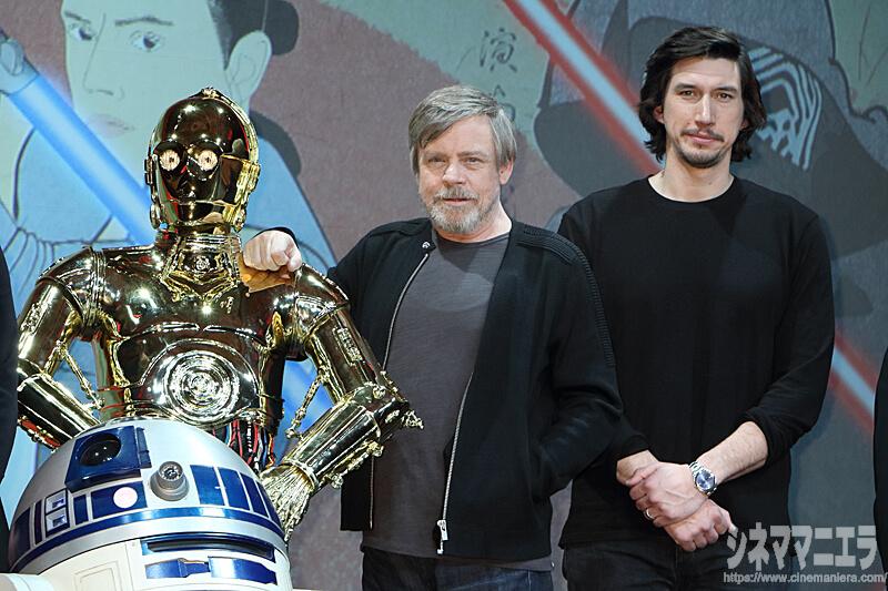 史上最大の「衝撃」が待ち受けていると言われている本作。前作でフォースが覚醒したレイ、ダース・ベイダーを継ぐ決意をしたカイロ・レンに伝説のジェダイ騎士ルーク・スカイウォーカーがもたらすものとは何か? この日キャスト陣に「スター・ウォーズ」の世界と日本文化が融合した“衝撃”の「スター・ウォーズ」浮世絵がお披露目。マークもアダムも瞬きをとめるかのように、凝視。マークに至っては「(浮世絵映像は)個人のコレクションにしたいのであとでくださいね!」としっかりおねだり。