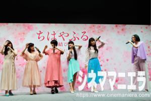 Perfumeは、前作の主題歌「FLASH」に続いて、今作では楽曲「無限未来」を主題歌として提供している。タイトルの意味として「“未来は無限に広がっているよ”という、そのままの意味を伝えたかったんです。「未来」というのは、わからないことだらけ。何も確証されていることはなくて、不安ばかりが募るかもしれないけれど、その未来を切り開くのは自分自身しかない。そこから、どんな未来でも選べるんだよ、というメッセージになっています」とかしゆかが解説。振付は「コンテンポラリーな動きもありながら、ジャズダンスもあります」とあ〜ちゃん。ポーズの決め方を説明しつつ、登壇者に指南。広瀬らはあっという間に動きをマスターして6名で決めポーズを披露した。なお、フォトセッションで「かるたポーズ」をしてくれました。