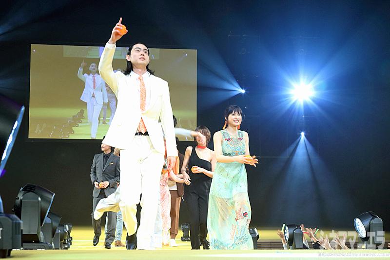 この日は「とな怪コレクション」と銘打った演出でキャストは作品のイメージカラーのオレンジを取り入れた装いで、菅田と土屋をはじめ古川雄輝、山田裕貴、池田エライザ、浜辺美波、佐野岳、速水もこみちが二人一組になってランウェイを歩むと黄色い歓声が飛び交った。
