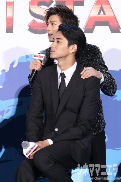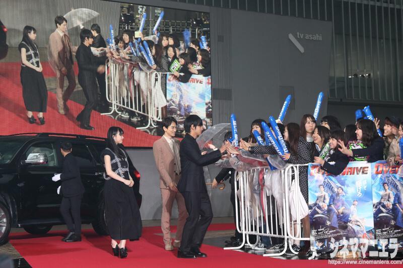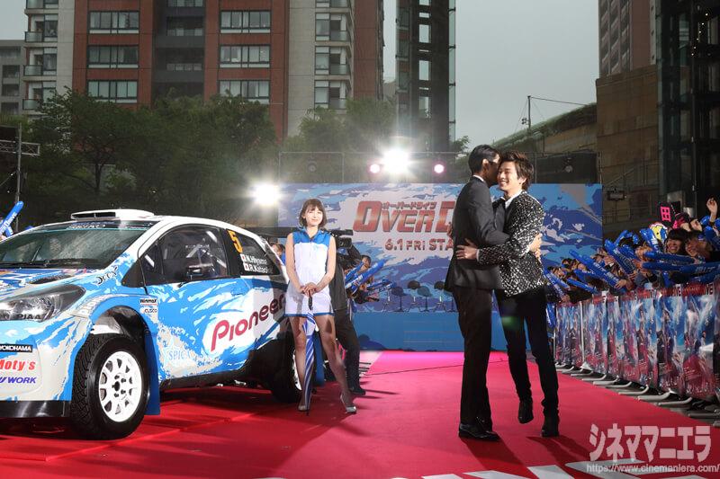 俳優の東出昌大と新田真剣佑が4月17日、映画『OVER DRIVE』の完成を祝したスペシャルステージ(レッドカーペットアライバルとトークイベント)と舞台挨拶に、森川 葵、北村匠海、町田啓太、羽住英一郎監督とともに出席し、「信じて語れ! OVER DRIVE全開トークスペシャル!」と題したトークタイムで、素顔を明かされ、照れ笑いを見せた。人気者が揃ったため終始黄色い歓声が途絶えることはなかった。