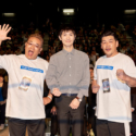 監督は「仙台で伊坂さんの作品をとれることになりまして、ぜひ宮城でサンドウィッチマンさんにでていただきたいなと思いました。あと、自分も福島郡山出身なので、東北の力になっていただいたお二人だったので、こうしてご一緒できてうれしいです。どの役がいいかなと考えた時に、海外でサンドウィッチマンさんのことを知らない方が映画をみたときに、一番ハマるのが、体格含めてセコンドの役だなと思い、お願いしました。サンドウィッチマンさんのおかげでこうしてたくさんの方にもエキストラでお集まりいただけていると思います」と返答。