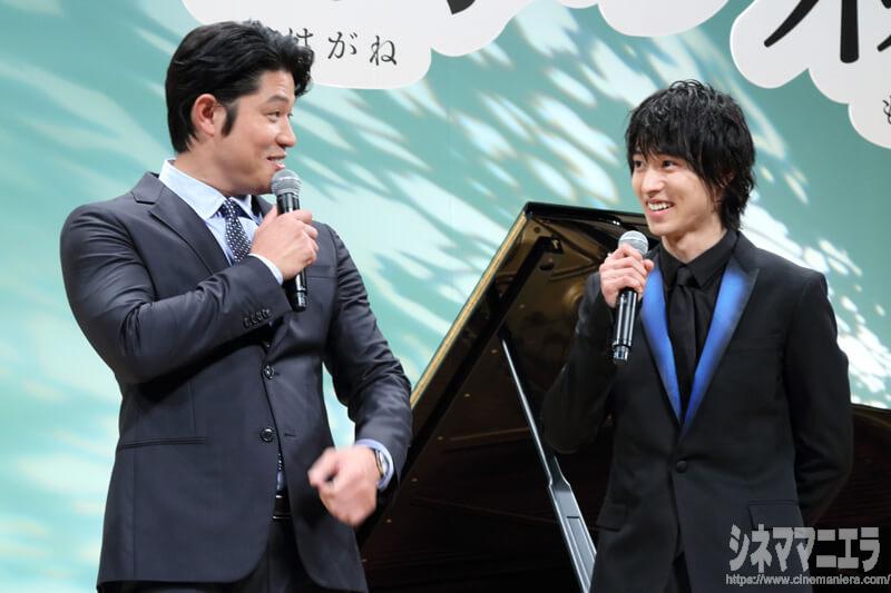 俳優の山﨑賢人が5月20日、主演映画『羊と鋼の森』の完成披露試写会に出席し、同作の「The Dream of the Lambs」や「水の戯れ」といった楽曲は「優しくて聴いていると癒される」と語った。この日は本作のエンディングで楽曲演奏をされた、ピアニストの辻井伸行氏がゲスト登壇し、エンディングテーマで久石譲作曲「The Dream of the Lambs」とモーリス・ラヴェル作曲「水の戯れ」の2曲を生演奏し、会場を魅了した。
