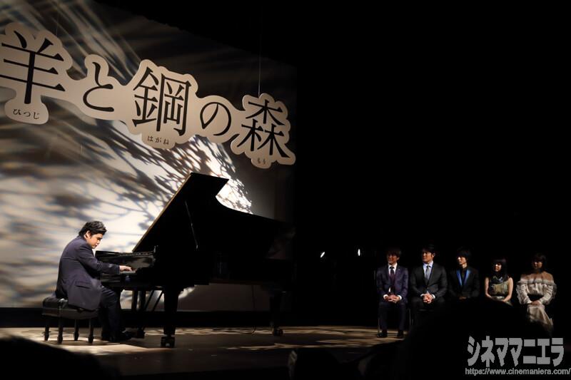 この日の舞台挨拶には山﨑をはじめ、鈴木亮平、上白石萌音、上白石萌歌、橋本光二郎監督が揃い、ゲストの辻井伸行氏も駆け付けた。辻井氏は世界最高峰のピアノ「スタインウェイ&サンズ」で、約9分に渡り「The Dream of the Lambs」(意味は羊の夢)と「水の戯れ」の2曲を生演奏する大サービス。